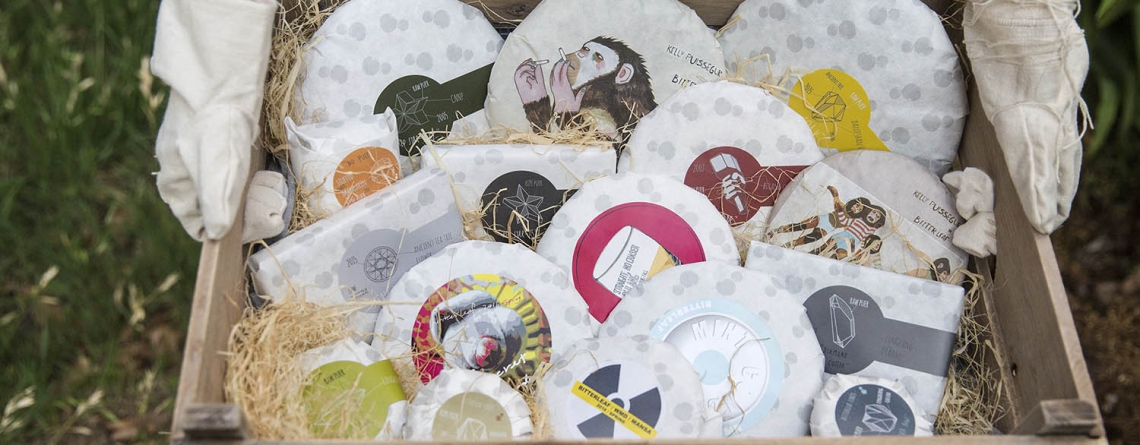 The whole 2016 family, as gathered by farmer Coomi. As mentioned, all designs are done in house, with our direct-sourced pressings receiving some special treatment. Thank you to Kelly Puissegur for her work on our Year of the Monkey cakes.